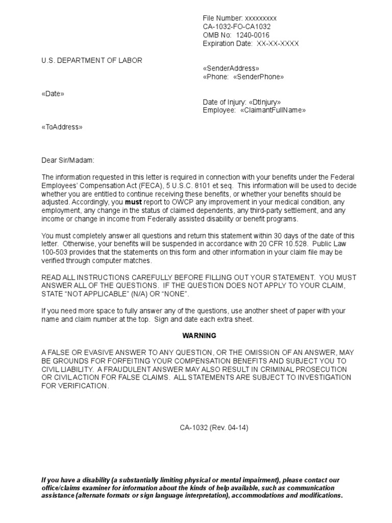 Taxprep determines the maximum percentage based on data in the taxpayer's and the spouse's returns (between 0% and 50%). What a federal employee should do when injured at work: Start a free trial now to save yourself time and money! For best results, download and open this form in adobe reader. Download the document or print your pdf version. If you have any questions about the completion of this form, call your district office. For more information, see our help file. If you've been sent a form to complete, have misplaced it, and can't find it at our forms website, please call your district office with jurisdiction over your claim to request a replacement. Forms are grouped by relevant subject, then in alphabetical order. Simply click on the appropriate form and print it using the print button provided near the top of the form. This includes military forces of the united states including the national guard reserve component or other affiliates. Take advantage of the fast search and powerful cloud editor to make a precise ca 1032 form. To get a no fault divorce, 1 spouse or domestic partner has to state that the couple cannot get along.